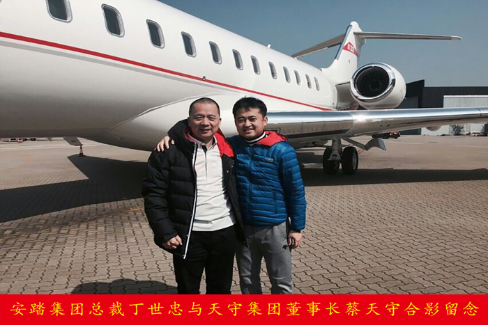 安踏集团总裁丁世忠与天守集团董事长蔡天守合影留念